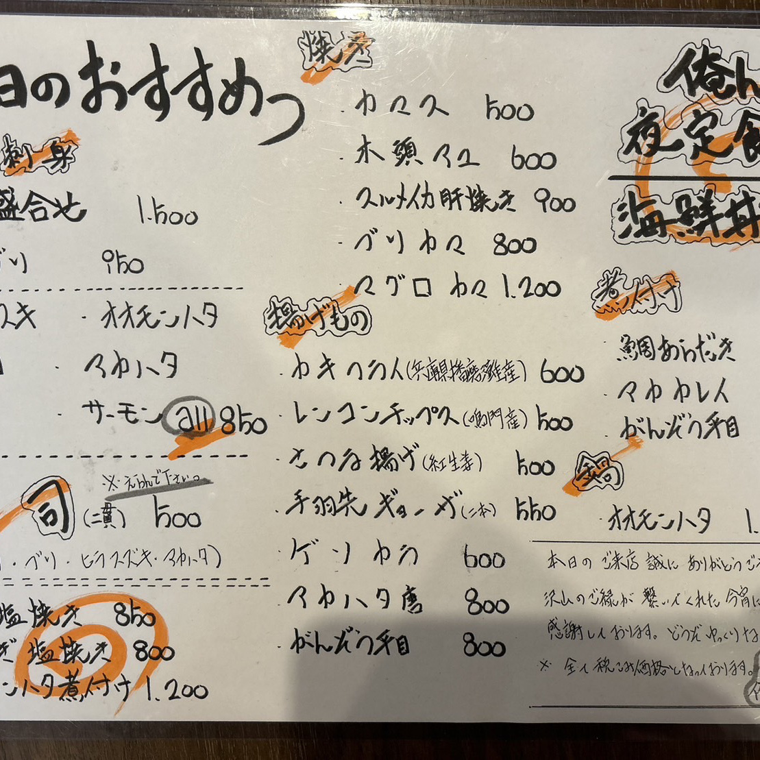 オーナーや仲間たちが近海で釣り上げた新鮮な魚を手頃な価格で提供することをコンセプトにしています。
